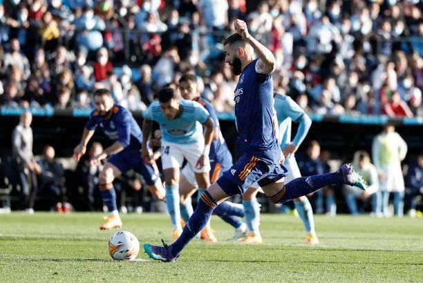 双方都采取以多打多的压制策略,皇马的个人能力显露出来。第17分钟,米利唐突入禁区得球,被诺利托从背后放倒。双方接触不太明确,但经过VAR复审,皇马获得点球。本泽马骗过门将迪图罗将球直着推进大门。第38分钟,塞尔塔中锋加利亚多头球攻门,球在库尔图瓦的干预下正中门柱,球弹出后快速自转,弹地后又滚向门内,最终过线。不过主裁判审核了足足2分钟确认进球无效,因为球撞柱后,身处越位位置的阿斯帕斯虽然没有触球,但干扰了阿拉巴解围。可怜的加利亚多不但进球被拿掉,还因为脱衣庆祝领了张黄牌,苦不堪言。